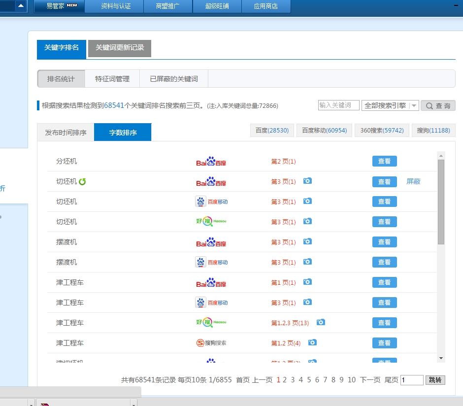 鑫業(yè)關(guān)鍵詞詳情排名--將近7萬個關(guān)鍵詞的排名效果(如上圖)