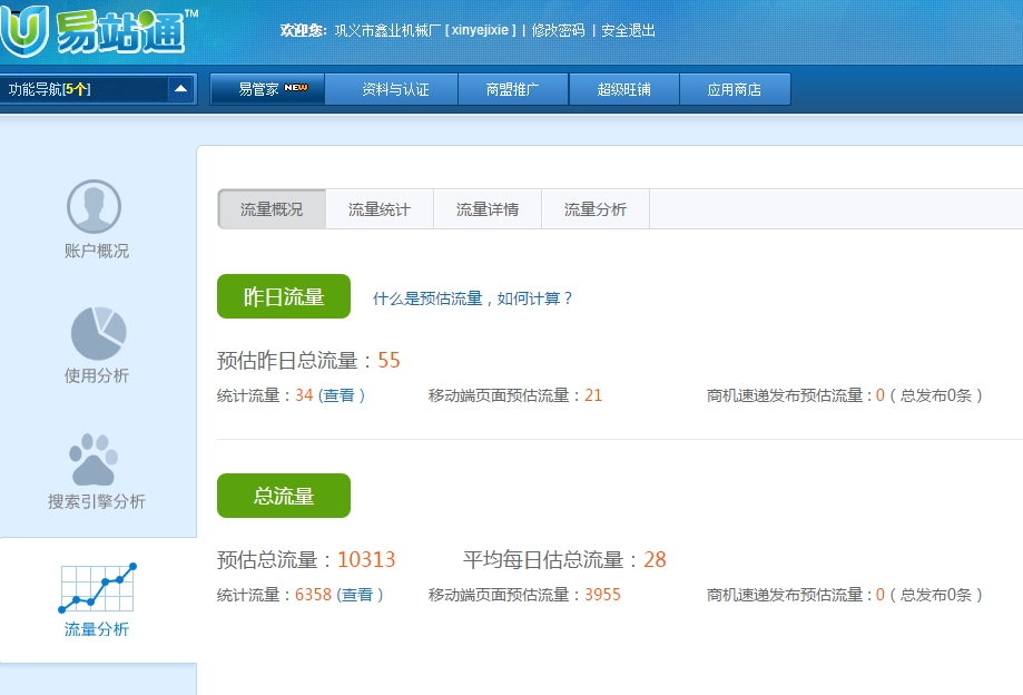 鑫業(yè)機械易站通流量分析【每天可以預(yù)估到的流量(如上圖)】