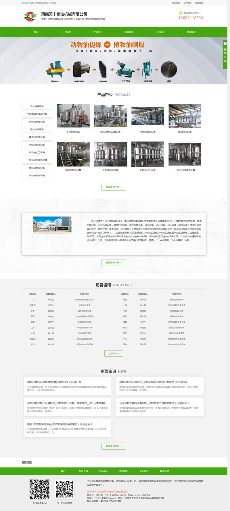 河南天豐糧機(jī)1月份動植物油設(shè)備2個(gè)單品網(wǎng)站制作成功