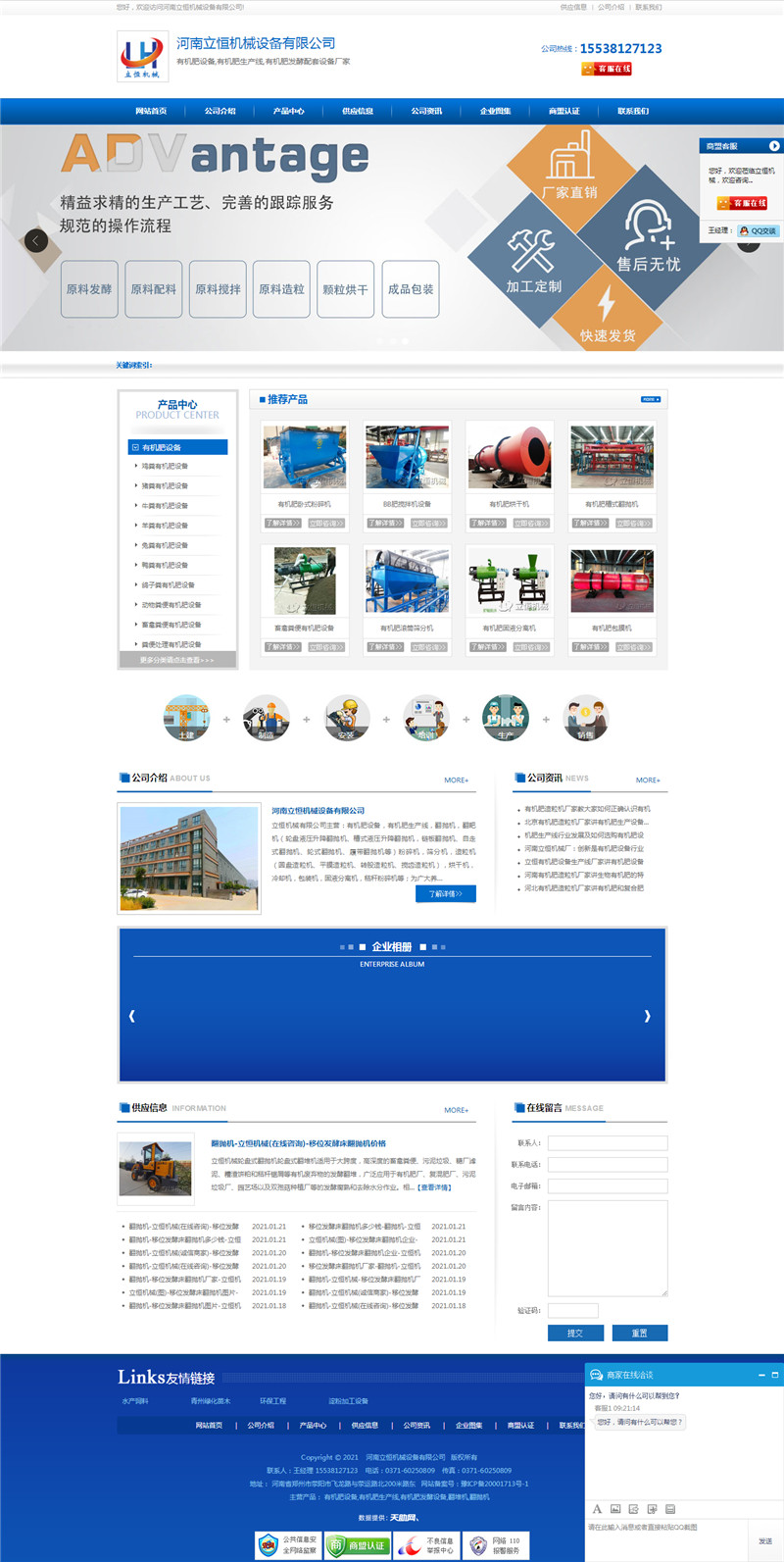 河南立恒機(jī)械設(shè)備有限公司近期在我公司開(kāi)通推廣業(yè)務(wù),同時(shí)易站通網(wǎng)站制作完成并上線。易站通網(wǎng)站就是用已經(jīng)成形的網(wǎng)站為框架進(jìn)行套用,可以在后臺(tái)進(jìn)行設(shè)置網(wǎng)站的一些信息,把這個(gè)網(wǎng)站改變成自己需要的網(wǎng)站信息。兩個(gè)網(wǎng)站分別www.cnzzsm.com有機(jī)肥造粒機(jī)網(wǎng)站,www.zgzzty.com有機(jī)肥生產(chǎn)線設(shè)備,網(wǎng)站整體上美觀大方,信息完整!主站域名www.hnlhjx.cn.